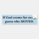 If God Seems Far Away, Guess Who Moved. Bumper Sticker