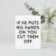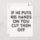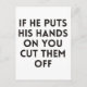 If he puts his hands on you cut them off postcard