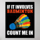 If It Involves Badminton Count Me In Badminton Pla Poster