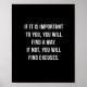 Inspirational 8"x10" Art Print. The prefect atrwork for your home or office, this would also make an excellent gift for a friend or family member in need of some positive encouragement. "If it is important, you will find a way. If not, you will find excuses."