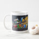 A ceramic mug featuring Shakespeare's quote from Twelfth Night, "If music be the food of love, Play on," in a lavishly illustrated still life. Perfect for the literary fan in your life or as an invitation to eat, drink, and be merry. Available in different sizes and styles. Artwork: Oil pastels on panel. Copyright Dominic A. White. All rights reserved.