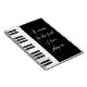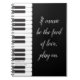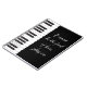 An elegant black and white design of a piano keyboard on the side, featuring a Shakespearean quote about music in an Elizabethan-type font ["If music be the food of love, play on" from his play Twelfth Night]. One can edit the quote itself to change it to something more suitable to their situation and/or personality; and also insert their name or the name of the person for whom this notebook is intended as a gift.