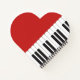 A heart-shaped notebook with an elegant black and white design of a piano keyboard on the side, featuring a Shakespearean quote about music in an Elizabethan-type font ["If music be the food of love, play on" from his play Twelfth Night]. One can edit the quote itself to change it to something more suitable to their situation and/or personality; and also insert their name or the name of the person for whom this notebook is intended as a gift.
