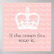 This cute print features a white crown on a blush pink "princess" pattern background and the text, "If the crown fits wear it.".