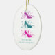 Sassy and chic If the Shoe Fits Ornament featuring a trio of fancy high heel shoe silhouettes in fuchsia, teal, and magenta nestled in cascades of swirls and the phrase "If the shoe fits, buy one in every colour." This pretty oval ornament is perfect for the trendy fashionista with a big love of shoes! Easy to customise, add the personalised text of your choosing. Click on the "Customise It" to find more personalisation options.