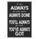 Encourage a growth mindset with this thought-provoking chalkboard-style poster. Featuring the quote, "If you always do what you've always done, you'll always get what you've always got," this piece serves as a reminder that change is essential for progress. It’s perfect for classrooms, offices, or personal spaces to inspire fresh thinking and motivate a new approach to challenges.
