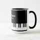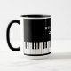 A dual purpose mug. Use as a coffee mug or as a tip jar when collecting tips while busking or seeking donations at other events. This amusing black and white mug is decorated with a piano keyboard above which floats the message with a pun on the meaning of the word 'change' - "If You Fear Change - Leave It Here"