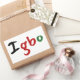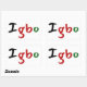 A lovely sticker, this item features "Igbo" in colourful black, green, and red colours. The background is white but can be customised as your suit. Choose from a variety of shapes.