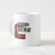 This oversize geology mug features the pun "Igneous is Bliss," a geology spin on the common phrase "Ignorance is Bliss." The image depicts an igneous system, with the letters drawn as grey rock and red, crystal-bearing magma mush below an active, erupting volcano.