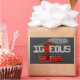 This geology humour sticker sheet features the pun "Igneous is Bliss," a geology spin on the common phrase "Ignorance is Bliss." The image depicts an igneous system, with the letters drawn as grey rock and red, crystal-bearing magma mush below an active, erupting volcano.
