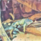 Iguana resting on a branch, it is made in painting with warm colors to enhance the rest of the little dragon.