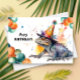 Iguana with Balloons and Party Hat Happy Birthday Card