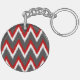 Ikat Chevron Stripes - Red, White and Grey / Grey Key Ring