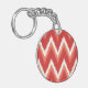 Ikat Chevron Stripes - Rust Orange and White Key Ring