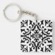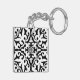 Ikat damask pattern - Black and White Key Ring