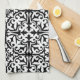 Ikat damask pattern - Black and White Tea Towel