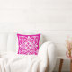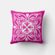 Digital reproduction of a damask medallion pattern with a striated, Ikat woven texture - creamy white on a deep pink / fuchsia background