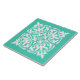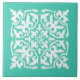 Digital reproduction of a damask medallion pattern with a striated, Ikat woven texture - creamy white on a peacock / turquoise / bright teal background