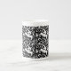 Digital reproduction of an Art Nouveau damask pattern with a striated, Ikat woven texture - White on a black background