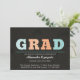 A dark birch background and funky ikat letters in turquiose and orange make for a unique graduation invitation.