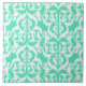 Ikat Moorish Damask - aqua and white Ceramic Tile