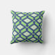 Ikat Pattern - Green, Indigo Blue and White Cushion