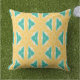 Vibrant Colourful Ikat Print Yellow and Teal Pillows. Great for patio, deck or garden bench. Change fabric options for indoor pillows.