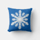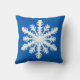 A delicate, lacy snowflake pattern on a solid background with a striated, Ikat woven texture - white snowflake on a deep cobalt blue ground