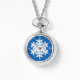 A delicate, lacy snowflake pattern on a solid background with a striated, Ikat woven texture - white snowflake on a deep cobalt blue ground