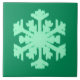 A delicate, lacy snowflake pattern on a solid background with a striated, Ikat woven texture - pastel mint green snowflake on a dark pine green / evergreen ground