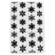 A delicate, lacy snowflake pattern on a solid background with a striated, Ikat woven texture - black snowflakes on a white background