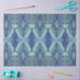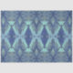 "IKAT Tribal Pattern Navy Blue Geometric Decoupage, Heavy weight tissue paper." A vibrant, colourful repeat pattern in the IKAT tribal style in light aqua turquoise blue with navy blue and grey. This artwork was inspired by middle eastern patterned rugs and tapestries. A new work of art designed and painted by internationally licensed artist, Audrey Jeanne Roberts. Copyright.