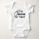 A play off the saying "I'll drink to that" with a younger twist. This design features the cartoon image of a baby bottle and the saying off to the side.