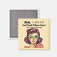 Give Mum a good laugh with this funny retro-style magnet! Featuring a vintage-inspired illustration of a stylish woman winking, along with the playful message: "Mum, I love you… even though I’ll never accept your friend request," this magnet is the perfect mix of humour and love. Designed with a classic polka-dot background and a charming mid-century aesthetic, this piece makes a great Mother’s Day gift, birthday present, or just a fun way to celebrate your mum's sense of humour. Perfect for display in kitchens, offices, or anywhere she needs a reminder of your love (and social media boundaries)! Some elements made with AI