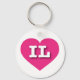 This key chain features a vibrant hot pink heart containing bold, white, upper case letters IL, the official abbreviation for Illinois, the prairie state.