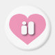 This magnet features a vibrant pink heart containing the bold, white, rounded lower case letters il, a playful abbreviation for Illinois, the prairie state.