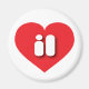This magnet features a vibrant red heart containing the bold, white, rounded lower case letters il, a playful abbreviation for Illinois, the prairie state.