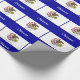Wrap your gifts in Illinois style with this paper that features the distinctive design on white of the Illinois state flag, complete with a bald eagle carrying a ribbon and a red and blue stars and stripes shield. Beneath each flag image is the customisable text in white script "Illinois". The flag images and text are placed on a bright blue background.
