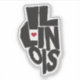 Typographic art with the state of Illinois. The state name letters are whimsically curved, stretched, squeezed, and slanted to the shape of the state outline, and rendered in brush strokes. A small red heart says you love Illinois.
