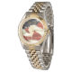 The watch is very nice, the picture is great and the watch looks like quality. The only problem I am having with it is that it is a little too large, and I also can't figure out how to open the clasp. No directions came with it. Very good. The printing is perfect and the watch keeps good time.