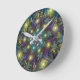 Illuminated Abstract Shiny Teal Purple Fractal Art Round Clock