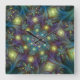 Illuminated Abstract Shiny Teal Purple Fractal Art Square Wall Clock