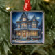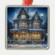 Seasonal winter house illuminated on a snowy night Christmas ornament.