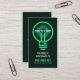An all emerald green cover is accentuated by a creative green light bulb logo that uses the job title "electrician" as its filament. The filament shines bright with its green light. You can change the caption remarks to the job title "electrician" to suit your service needs. Just underneath the bulb logo lies your prestigious name, the green phone contact and a slogan caption option to publicise your services.