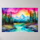 This unique poster features an illustration of quite colourful sunset, deep in the forest after dark. Please feel free to adjust all the available options as you wish. #Family #Teens #Teenagers #Whimsical #Fantasy #Full #Moon #Stars