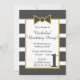illusima Grey Gold Stripy Boys Bow Birthday Party Invitation