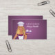 Two sided business card template for bakers with professional illustration of a fashionable baker woman wearing a chef hat holding a tray with desserts. The graphics are very elaborate. This boutique style card is modern and professional. Matching items available. The illustration is available for licensing for a fee for uses outside of this card.