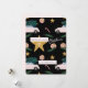 Pretty and sweet black and pink Christmas card features illustrated blush pink retro cars driving their festive Christmas trees home to decorate with beautiful holiday ornaments. Pastel gift boxes are wrapped up in holiday ribbon, and gold stars surround.