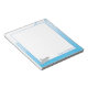 An animal-themed notepad that features a friendly, gray, shark illustration and a blue water border. The notepad includes a customizable name. Simply customize the name, add this notepad to your cart, and enjoy your personalized writing.
