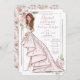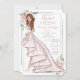 Floral bridal shower invitation features customisable bride to be in glitter wedding gown with choice of blonde, brown, auburn hair and several skin tones.